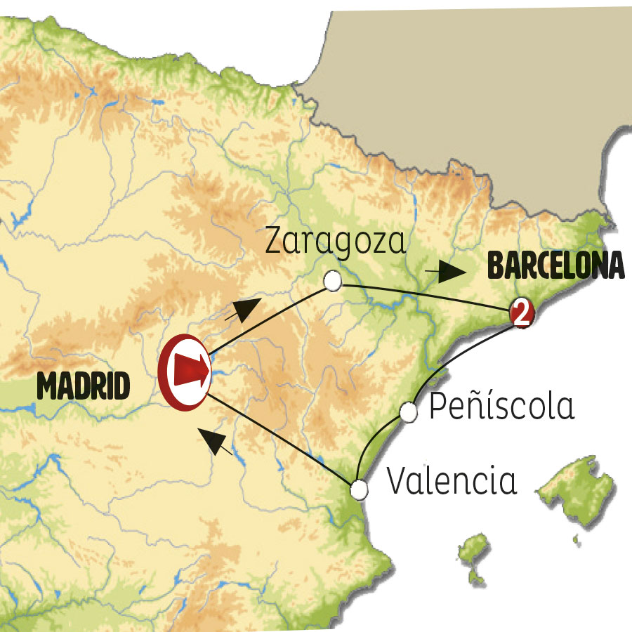 MADRID, ZARAGOZA, POBLET, BARCELONA, PEÑÍSCOLA, VALENCIA
