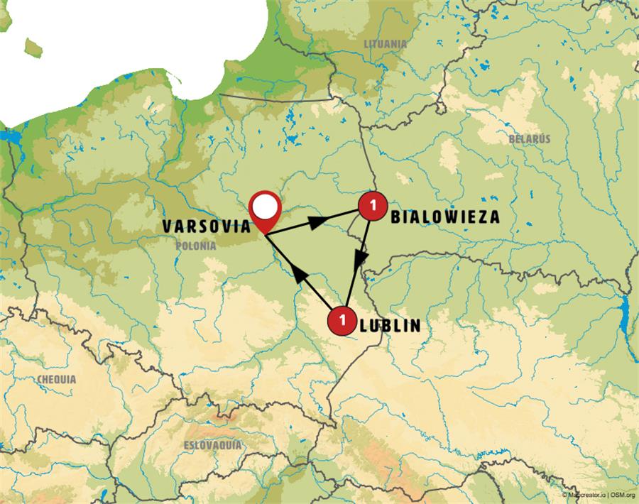 VARSOVIA, TYKOCIN, BIALOWIEZA, SIEMIATYCZE, LUBLIN, SANDOMIERZ, KAZIMIERZ DOLNY