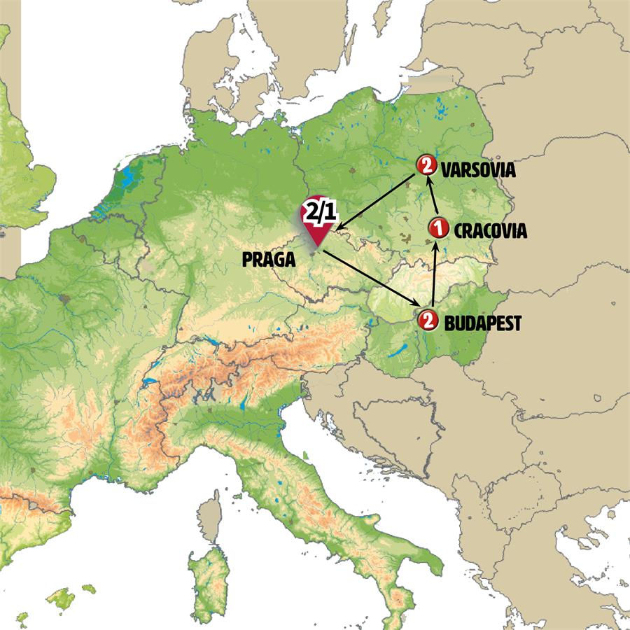 PRAGA, LEDNICE, BUDAPEST, BRATISLAVA, TRENCIN, CRACOVIA, AUSCHWITZ, CZESTOCHOWA, VARSOVIA, WROCLAW