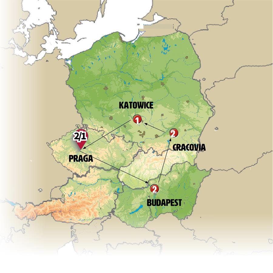 PRAGA, LEDNICE, BUDAPEST, BRATISLAVA, TRENCIN, CRACOVIA, KALWARIA ZEBRZYDOWSKA, BARWALD DOLNY, WADOWICE, AUSCHWITZ, KATOWICE, OPOLE, WROCLAW