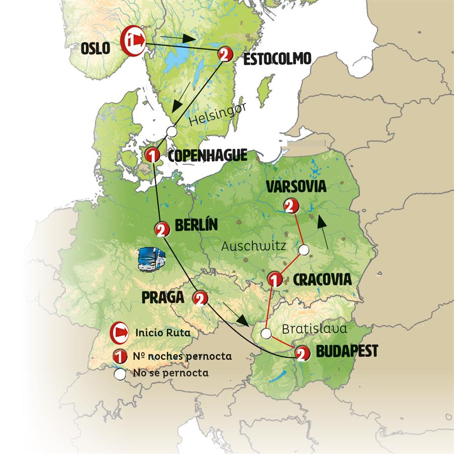 OSLO, OREBRO, ESTOCOLMO, HELSINGOR, COPENHAGUE, BERLIN, DRESDE, PRAGA, LEDNICE, BUDAPEST