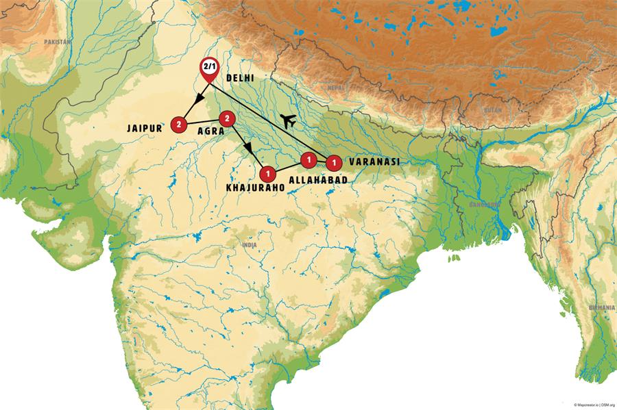 DELHI, SAMODE, JAIPUR, ABHANERI, FATEHPUR SIKRI, AGRA, JHANSI, ORCHHA, KHAJURAHO, ALLAHABAD, VARANASI