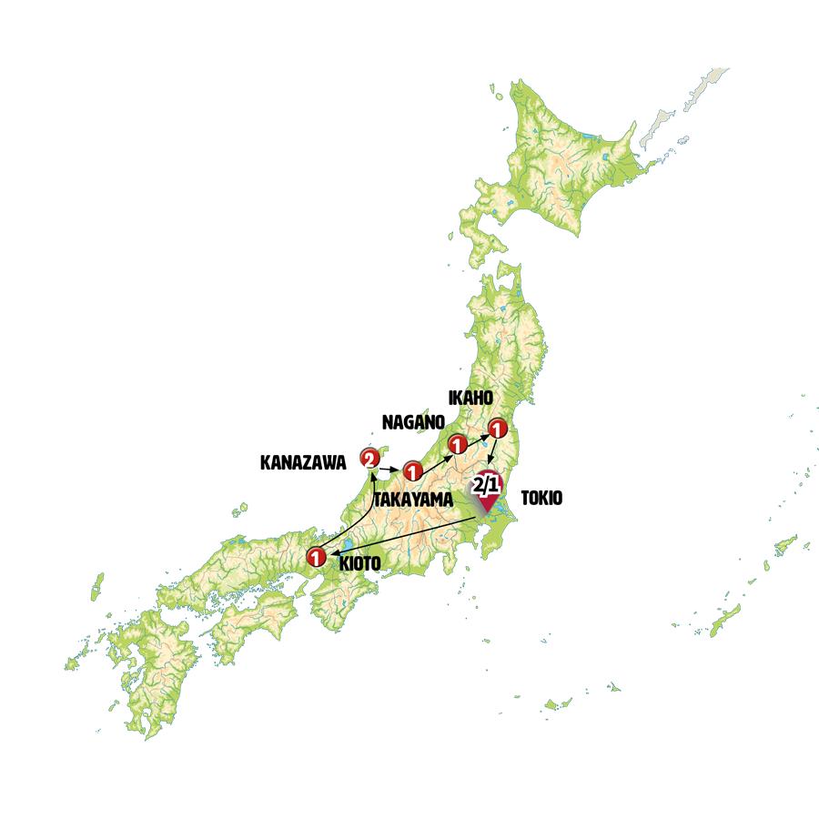 TOKIO, KIOTO, EIHEI-JI, KATSUYAMA-MUSEO DE LOS DINOSAURIOS, KATSUYAMA, KANAZAWA, AINOKURA, SHIRAKAWAGO, ALDEA DE HIDA, TAKAYAMA, HIDA FURUKAWA, MATSUMOTO, NAGANO, PARQUE DE LOS MONOS, KUSATSU, IKAHO, NIKKO