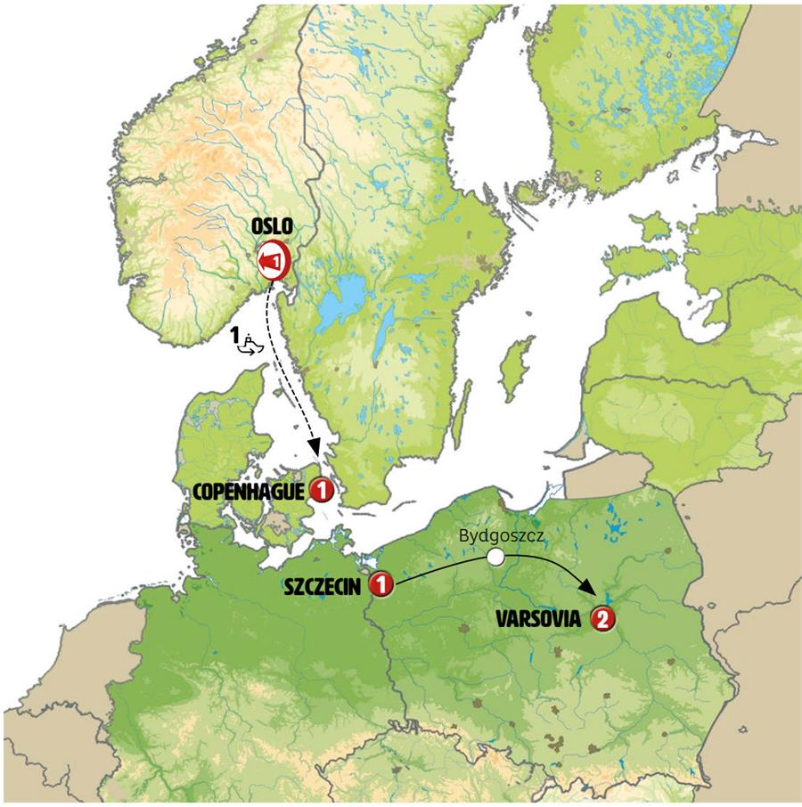 OSLO, FERRI OSLO COPENHAGUE, COPENHAGUE, ROSTOCK, SZCZECIN, BYDGOSZCZ, TORUN, VARSOVIA