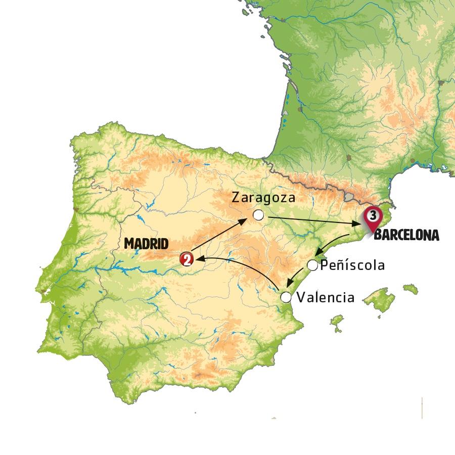 BARCELONA, PEÑÍSCOLA, VALENCIA, MADRID, ZARAGOZA, POBLET