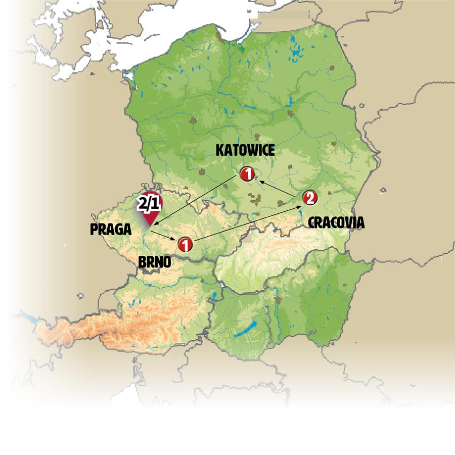 PRAGA, BRNO, BRATISLAVA, TRENCIN, CRACOVIA, KALWARIA ZEBRZYDOWSKA, BARWALD DOLNY, WADOWICE, AUSCHWITZ, KATOWICE, OPOLE, WROCLAW