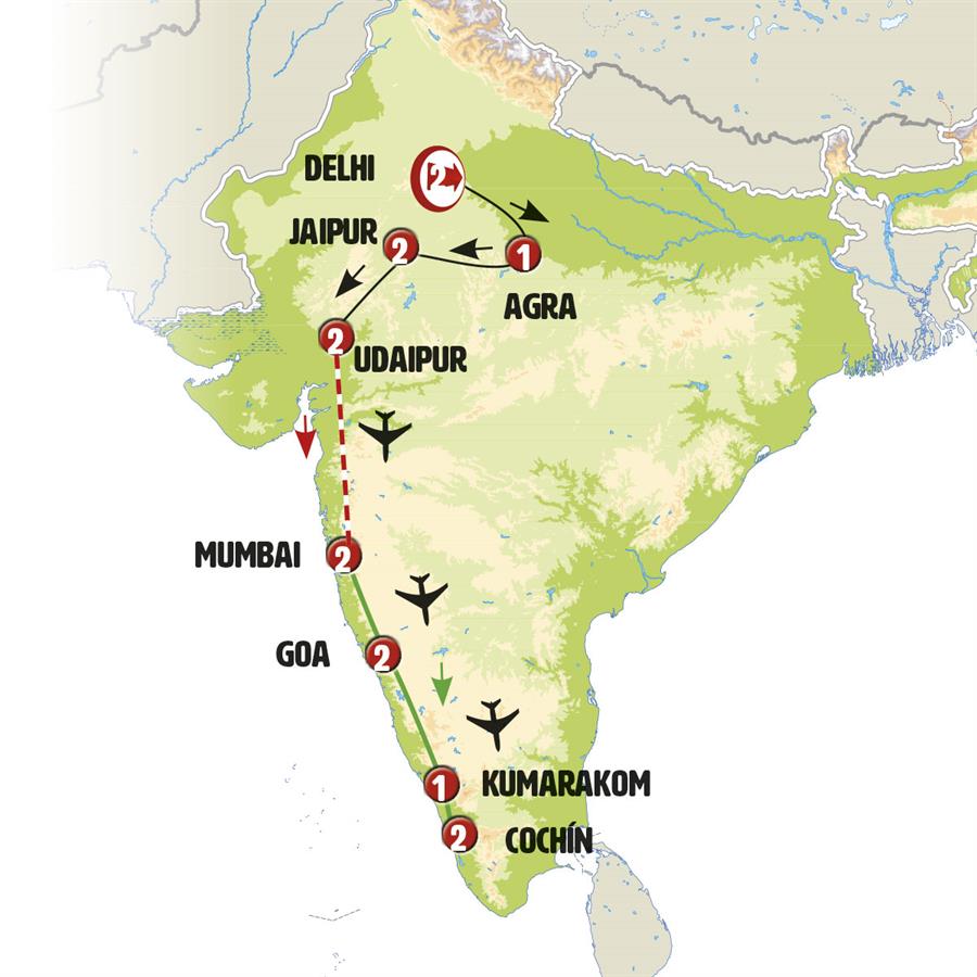 DELHI, AGRA, FATEHPUR SIKRI, JAIPUR, UDAIPUR, BOMBAY